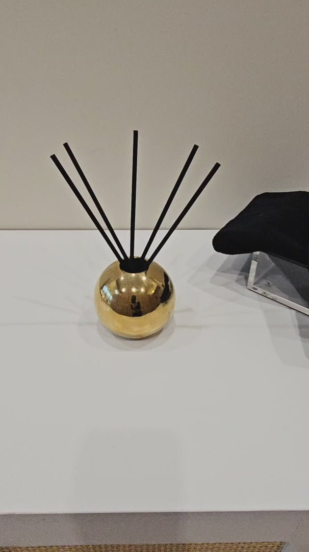 This elegant Gold Globe Diffuser adds a touch of sophistication to any space. Crafted with sleek design in gold with a classy ceramic floral, it's a perfect addition to any home or office decor. Its lifelike appearance brings the beauty of nature indoors without the hassle of maintenance.