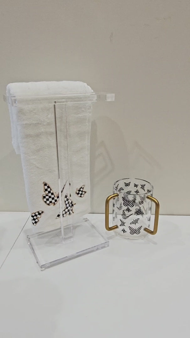 This beautifully designed Onyx Butterfly Hand Towel will bring washing to a new level! Features checkered embroidery. Finally a modern & magnificent towel!