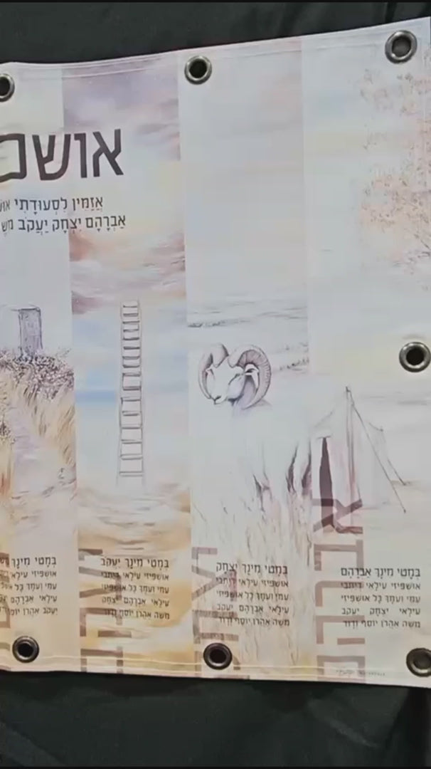 Add elegance and meaning to your סוכה with this stunning Silver Al Hamichya Sukkah decoration by artist Batya Silver. Featuring the full Hebrew text of the על המחיה blessing and rich hand-painted style, this weatherproof vinyl poster is perfect for indoor or outdoor use. Easy to hang and ideal for enhancing your Sukkot décor with beauty and tradition.