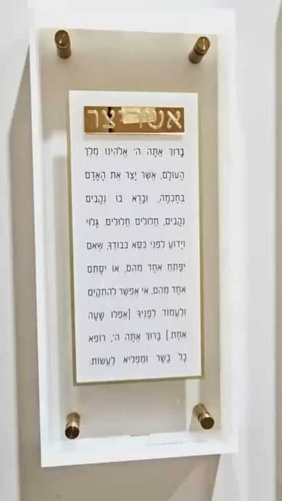 Clean, clear, and thoughtfully crafted, it honors the powerful daily bracha (blessing) of Asher Yatzar, reminding us to pause with gratitude. A meaningful addition to the Jewish home or a beautiful Judaica gift for any occasion.