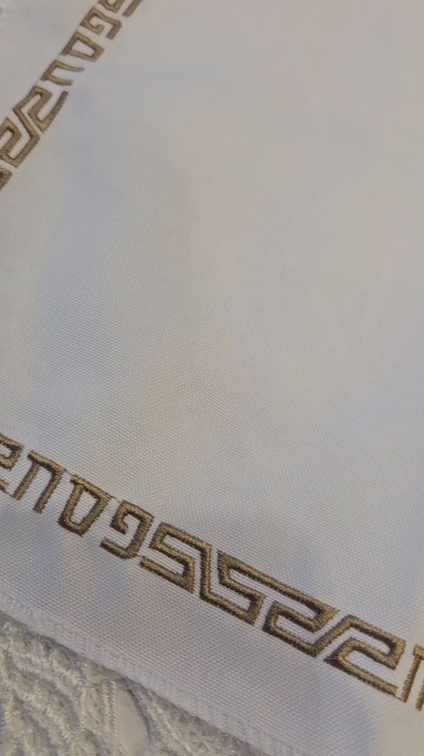 These Pesach Real Napkins is a must-have for your Pesach Seder. Made with high-quality material, and stunning embroidered geometric border detailing and wording. These napkins provide a sophisticated and elegant touch to your table setting. Coordinate with the Embroidered Words Geometric Pesach Set.