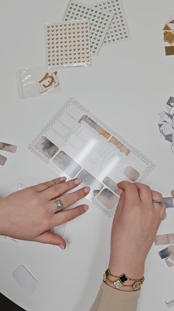 - Includes, Rhinestones, Mosaic Pieces, Gold letters