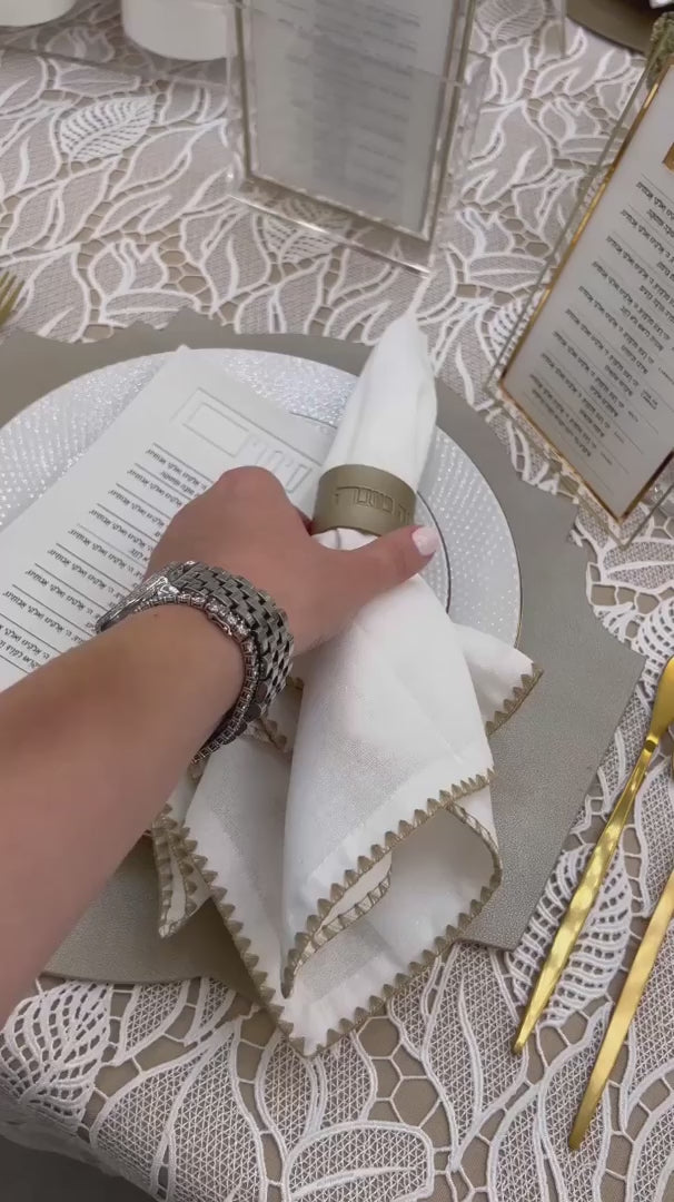 These gorgeous, classy Leather Napkin Wraps are a must-have at your Rosh Hashana tablescape! Use it to wrap your cutlery or napkins. Set by each seat to upgrade your table! So easy to style. So easy to clean.
