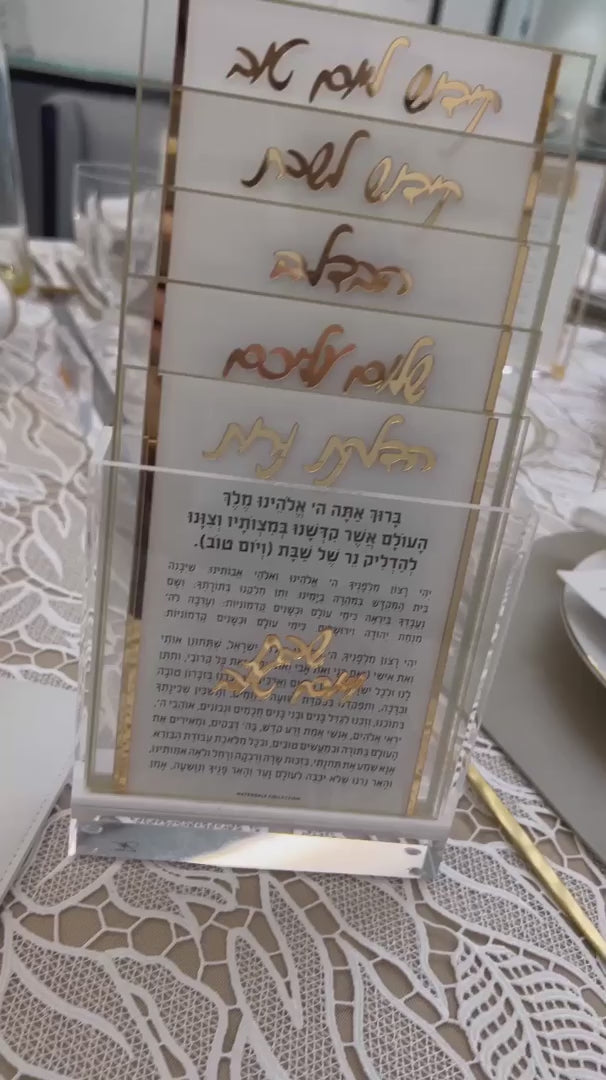 Upgrade your Rosh Hashanah table with our Leather Simanim Cards in a Pouch. This leather card, enclosed in a durable leather pouch, serves as both a practical addition and an eye-catching centerpiece.